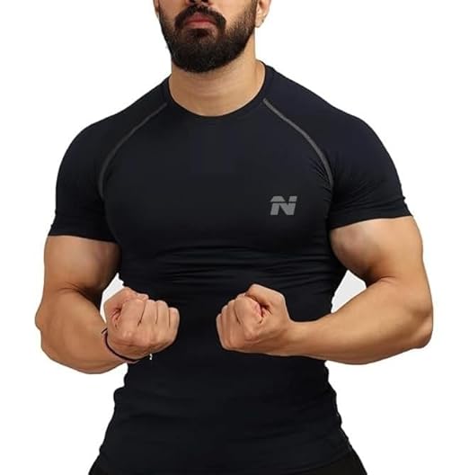 NINQ Half Sleeve Compression T-Shirt – Men’s Athletic & Sports Tights for Fitness